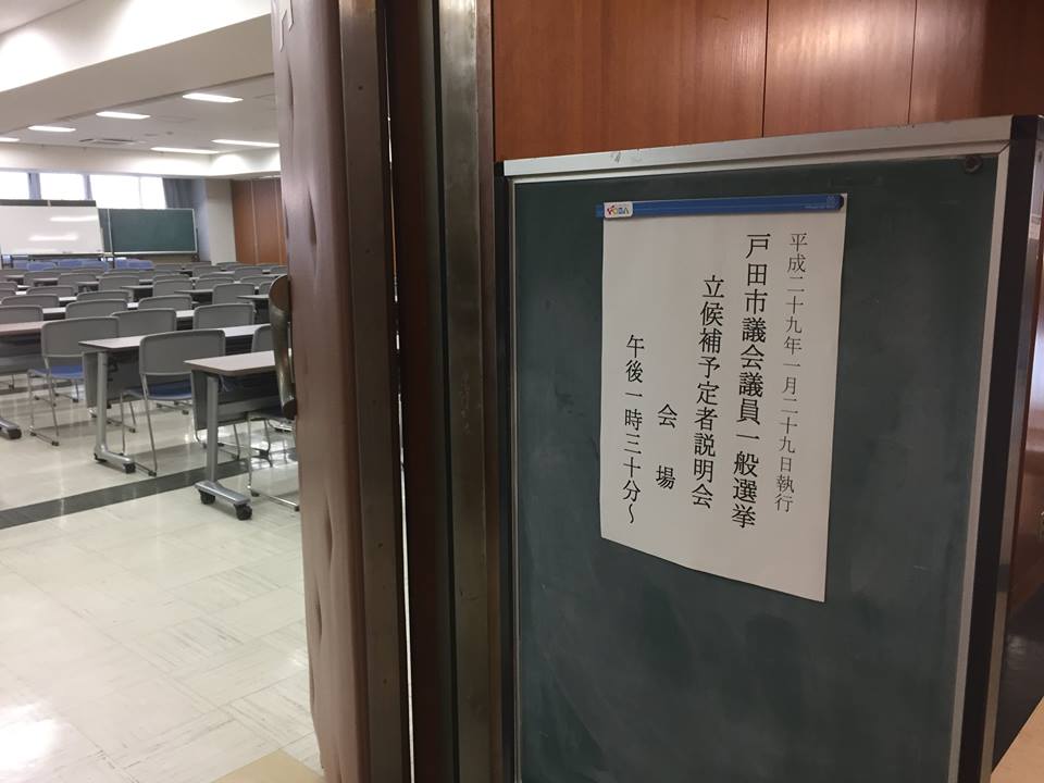 今日は13時半から、来年1月の市議会議員選挙の立候補