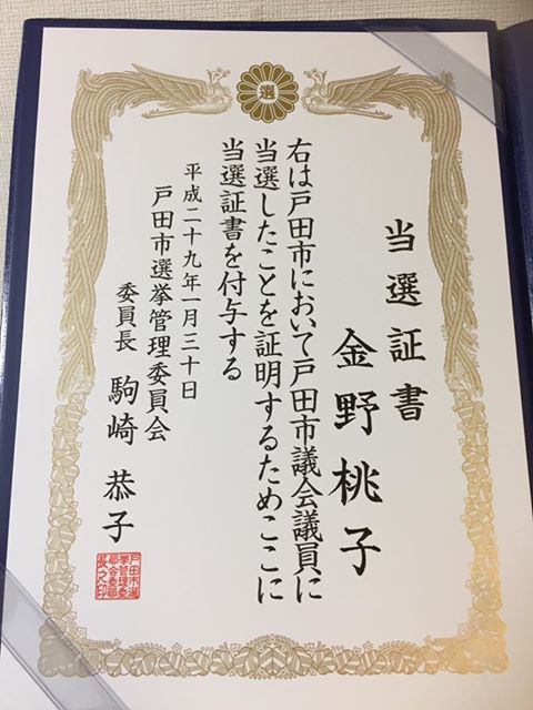 一番に名前を呼ばれ当選を伝えられると、市議会議員とし
