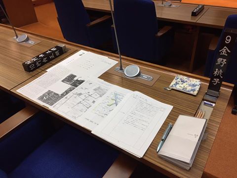 机に置いてあるのは、一般質問の通告書の他に、各議員が