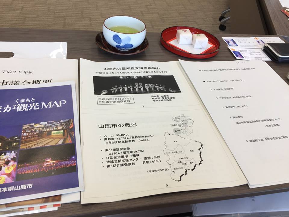 テーマは認知症政策について、山鹿市では認知症地域支援体制の構築事業について、大牟田市では地域認知症ケアコミュニティ推進事業について学びました。