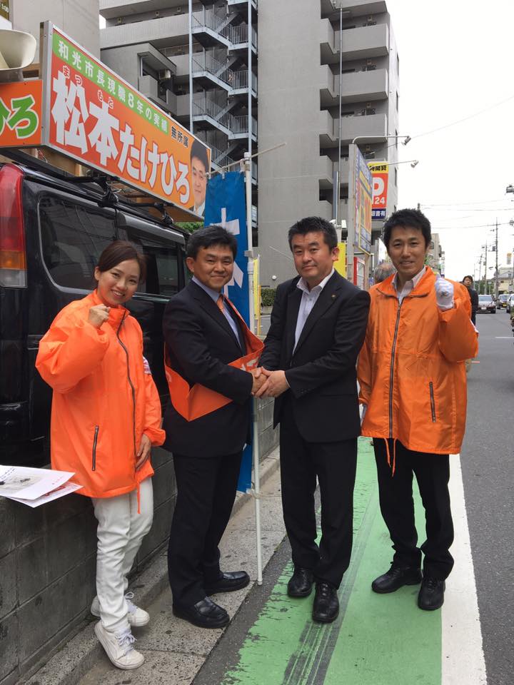 今日は終日、和光市長選挙の松本たけひろ候補(現職)の応援に伺いました。