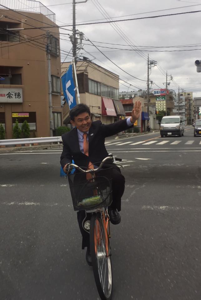 今日は朝から晩まで近くにおりましたが、分刻みで公務をこなしながら、自転車に自らまたがり市内を駆け巡る現職市長(候補)のタフさに圧倒されました。