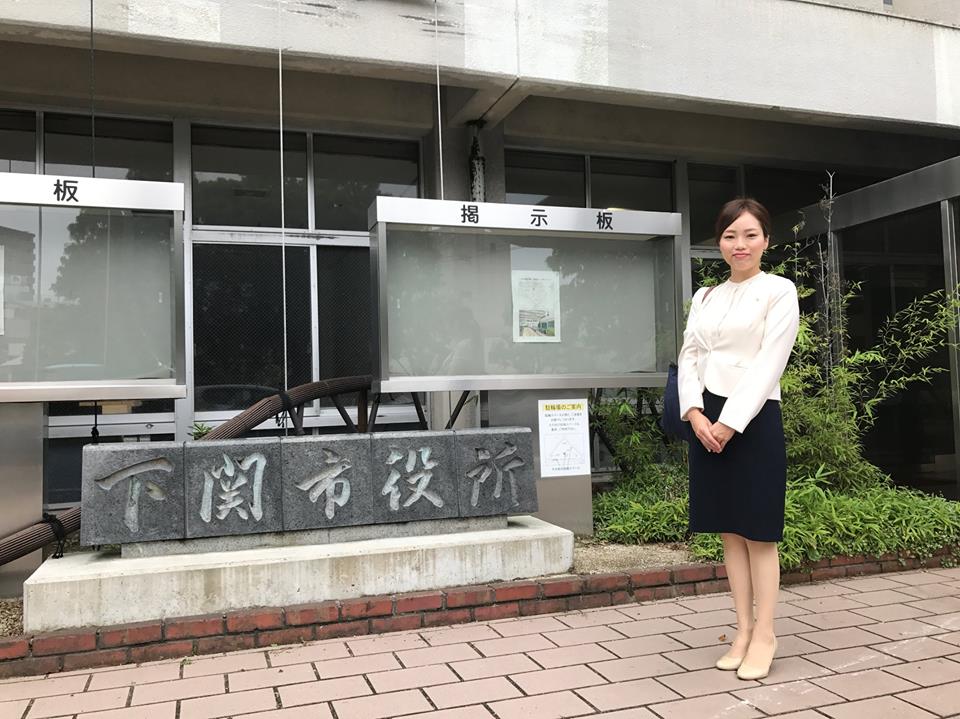下関市庁舎前にて。