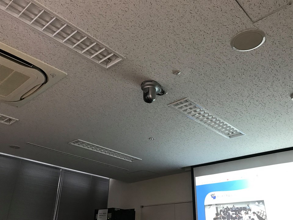 天井のカメラ。執行部側と議員側をそれぞれ写します。新
