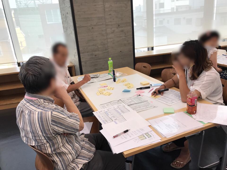 今回は14時から17時までの3時間で、前半約1時間は6月議会報告を、後半約2時間はワークショップを行いました。
