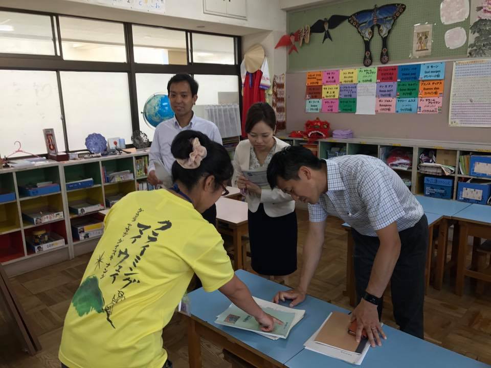 今日は実際の授業風景(少人数制の算数の授業)、ワールドルーム(祖父母・父母が外国人の子ども)、特別支援教育、ホームルーム、職員室等を見学させていただきました。