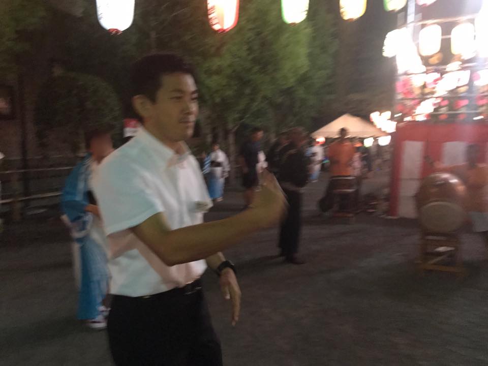 菅原県議。市内いくつもの町会盆踊りにご参加されている