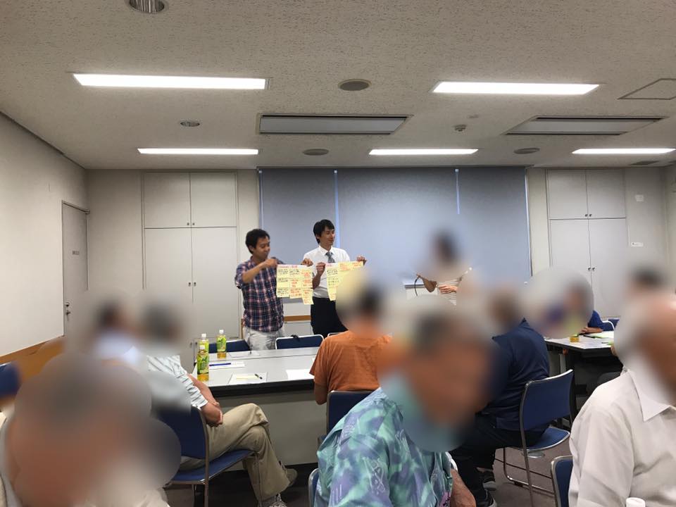 議会報告の後開かれた情報交換会では、5.6人に分かれてグループディスカッションです。