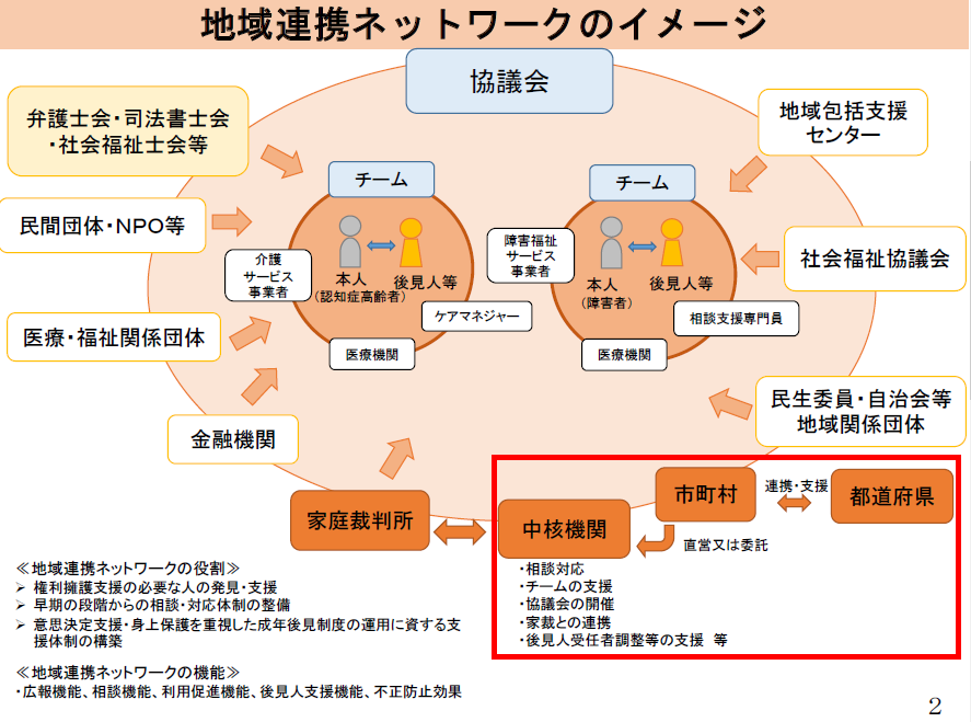基本計画の主な点は、①利用者がメリットを実感できる制度・運用の改善、②権利擁護支援の地域連携ネットワークづくり、③不正防止の徹底と利用しやすさとの調和があり、本計画の中で市町村には様々な義務が課されています。