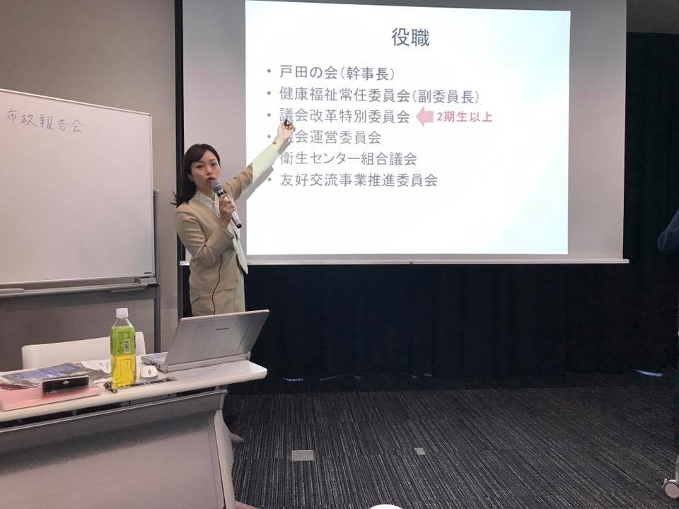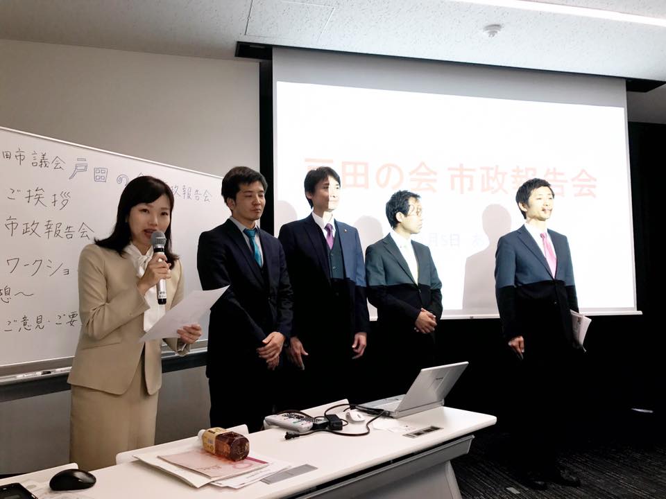 酒井議員は土地区画整理事業など文教建設常任委員会の審査内容について、私は1期目から2期目への変化や発達障害など今期の一般質問について、浅生議員は議員の充て職や総務常任委員会での市の資金管理運用の審議について、佐藤議員は視察内容や障害者差別解消への取り組みについて、矢澤議員は市民生活常任委員会や一般質問でのバス事業について、それぞれお伝えしました。