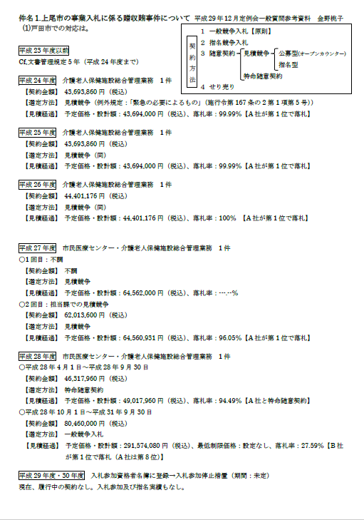 [※参考 随意契約期間は、老健(50床)の1年間で約4400万円(落札率99.99~100%)であったのに対し、一般競争入札に移行後は老健(80床)+新設医療センターの3年間で約8000万円(1年間で約2700万円)(落札率27.59%)]