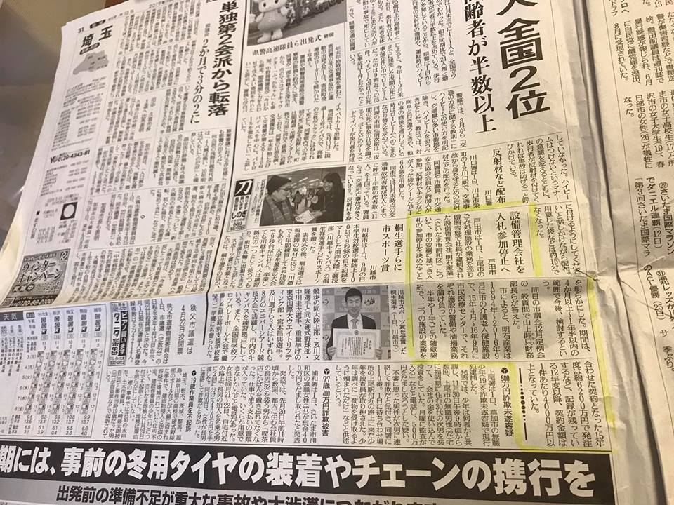 今回一般質問により明らかになった入札参加停止措置は、翌日の読売新聞にも掲載されました。