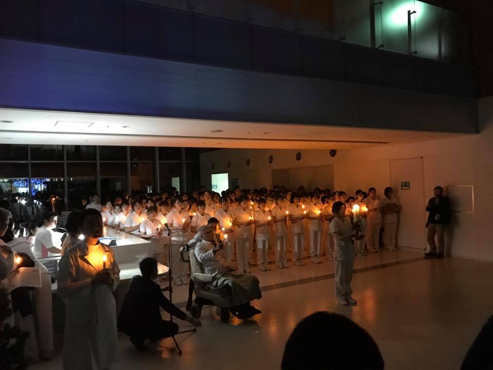 19時から、戸田中央総合病院のキャンドルサービスに来賓として出席させていただきました。 戸田中央総合病院開設以来、ずっと続いているイベントで、クリスマスをご自宅で過ごすことのできない方々のために始めたそうです。 毎年この時期に、病院の先生方、看護師の皆さん方とともに「きよしこの夜」を歌い、ろうそくに火をともすと、寒い師走の時期にポッと心もあたたまります。