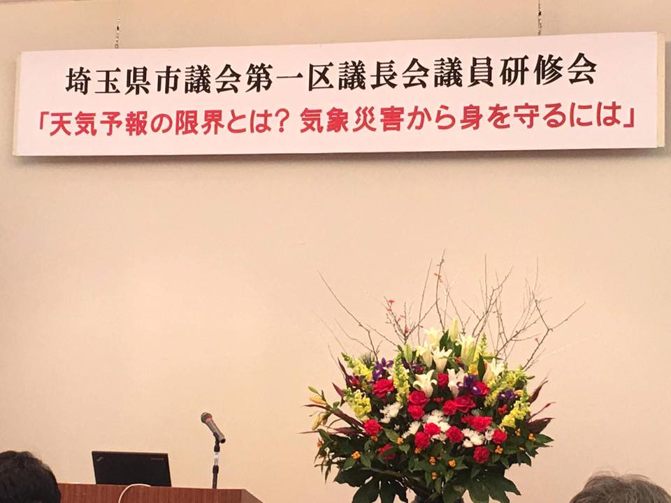 今日は埼玉県市議会第一区議長会議員研修会@草加市文化会館でした。 講師の方の関係上、詳細をお伝えできませんが、気象予報の現場から見た災害対策について学ぶことができました。 「災害」と言ってもやはり色々ありますね。… 地震だけではなく、豪雨や竜巻など、天気予報から読み取れる災害についても広く知識を持ち、正しい判断ができるようにしなければならないと感じました。