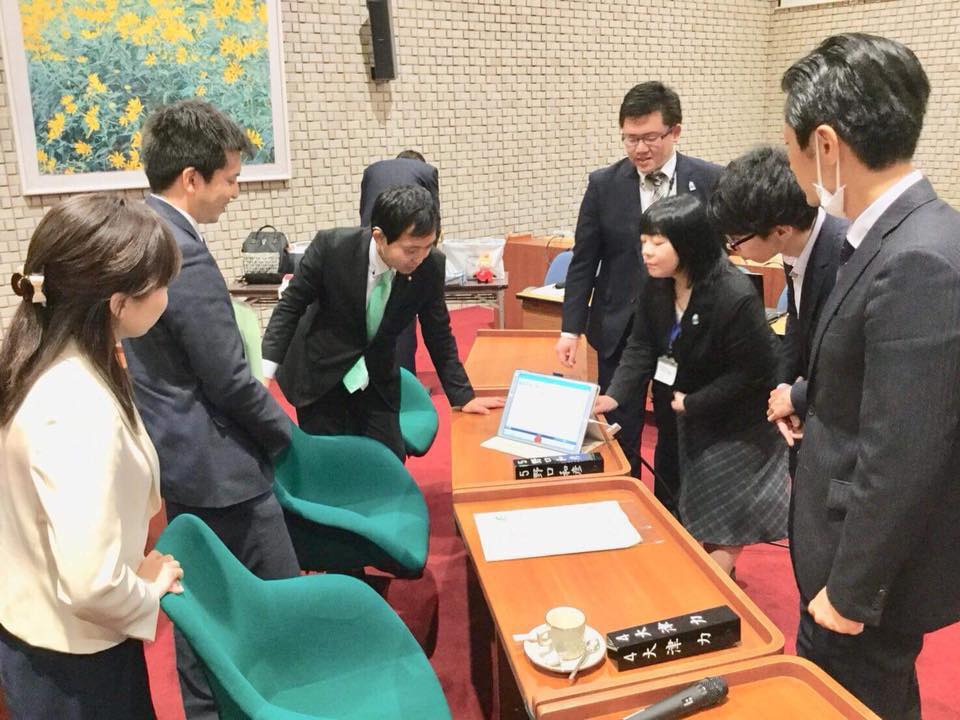 会派メンバーからは、タブレット端末等では高齢者が使いづらいのではないか、遠隔手話通訳ではコミュニケーションがとりにくいのではないか、事業費と利用実績(平成29年度実績は約560万円。利用回数143件→1件あたり3,4万円)からすると、民間のサービス利用への補助の方が効果があるのではないか、今後サービスの広域化をすることでよりコストも下がり全国へ普及するのではないか等、多くの質疑応答・意見交換をさせていただきました。