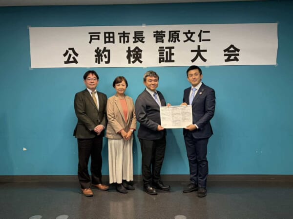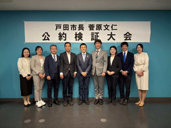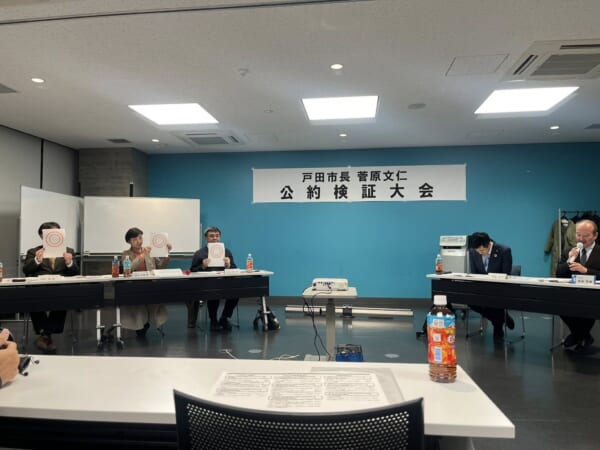 今日は16時より、あいパルで開催された戸田市政経懇話会主催の「すがわら文仁市長公約検証大会」に参加させていただきました。