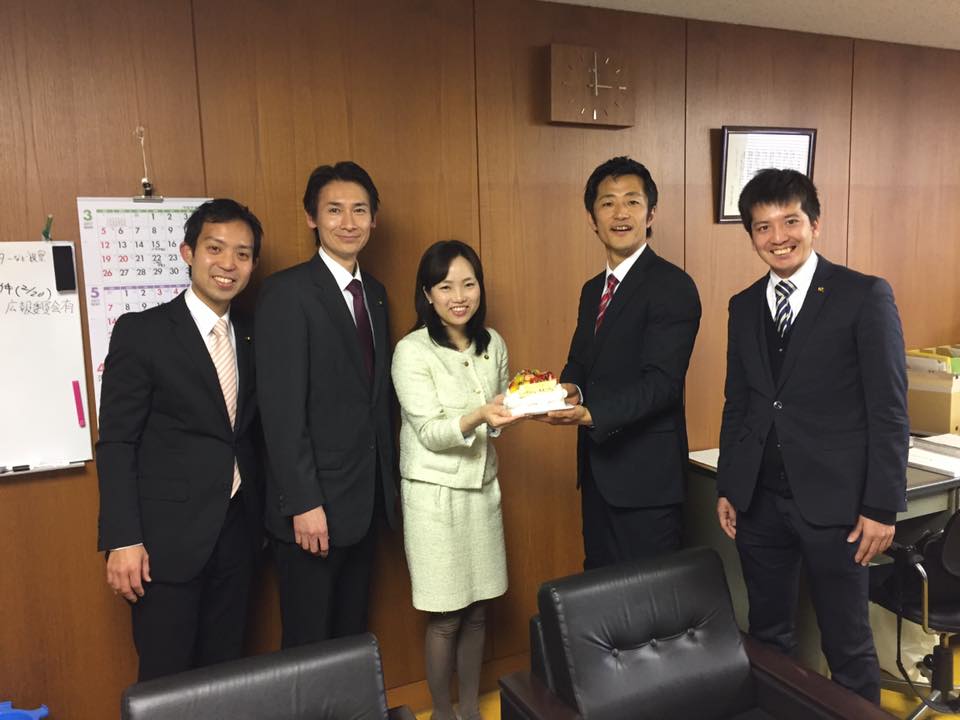お昼休みにみんなでお昼を食べに出かけると、一期生3人が突然挙動不振になりいなくなったので、酒井さんと「どうしたんでしょうね?」と話していたら、なんと! 一期生3人が、酒井さんと私の誕生日ケーキを用意してくれていました! 酒井さんは4日、私は2日で、ともに魚座のA型です。