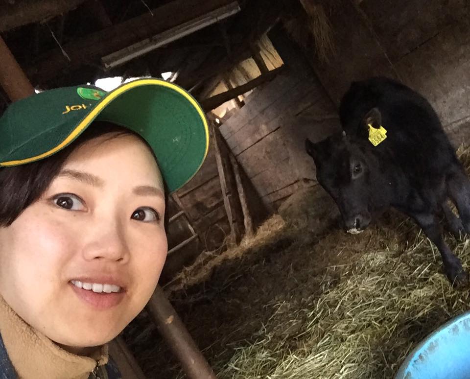 祖母は仔牛も育てているので、私も少しお手伝いです。
