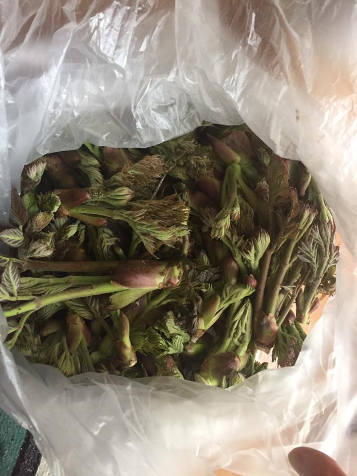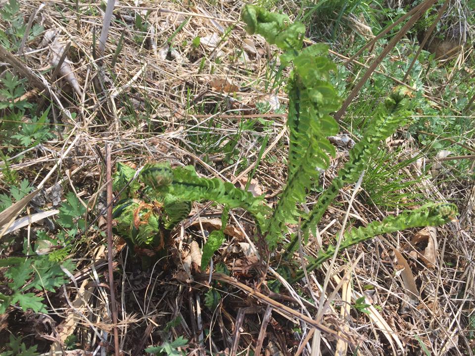 こごみです。左のこごみはまさに食べ頃、右のこごみは開