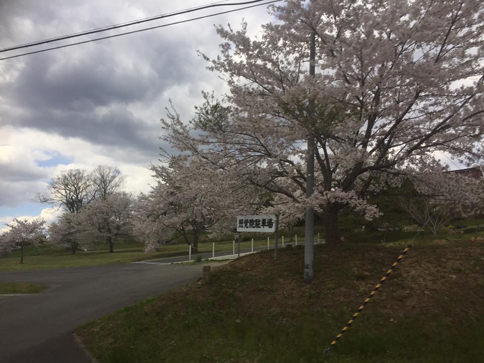 山の上はまさに桜が満開です。麓に降りると、もう葉桜で