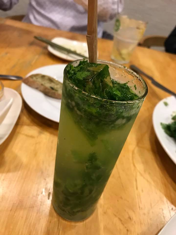 パクチーモヒート。モヒートはヘミングウェイが愛したお酒。私も好きです。