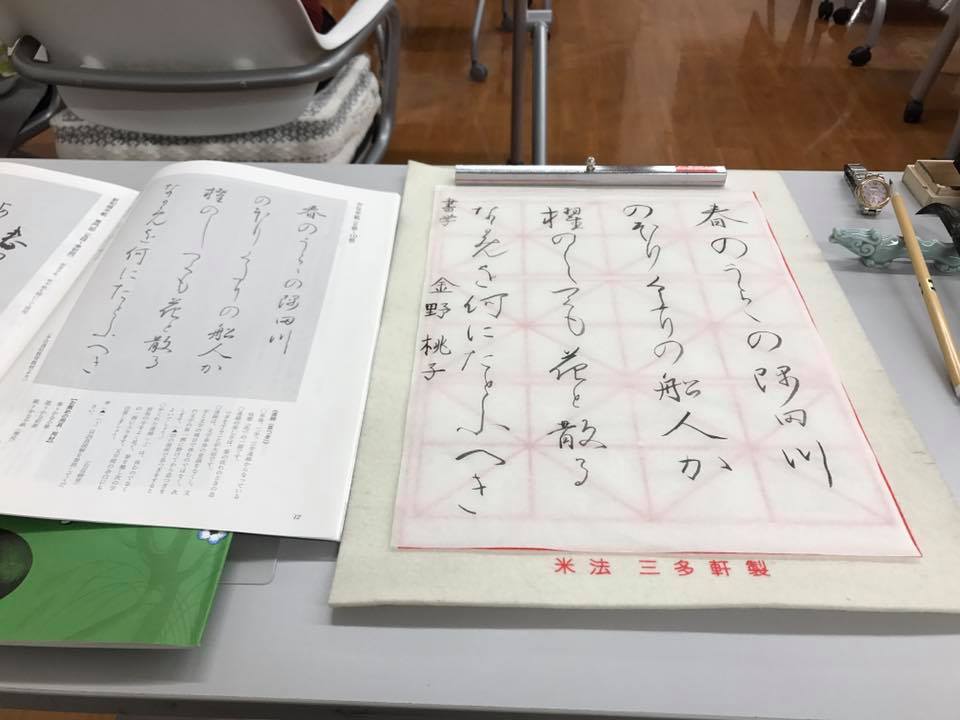 先週は「いろはにほへと ちりぬるを わかよたれそ つねらむ」まで習ったので、今日は続きの「うゐのおくやま けふこえて あさきゆめみし ゑひもせす」を習いました。