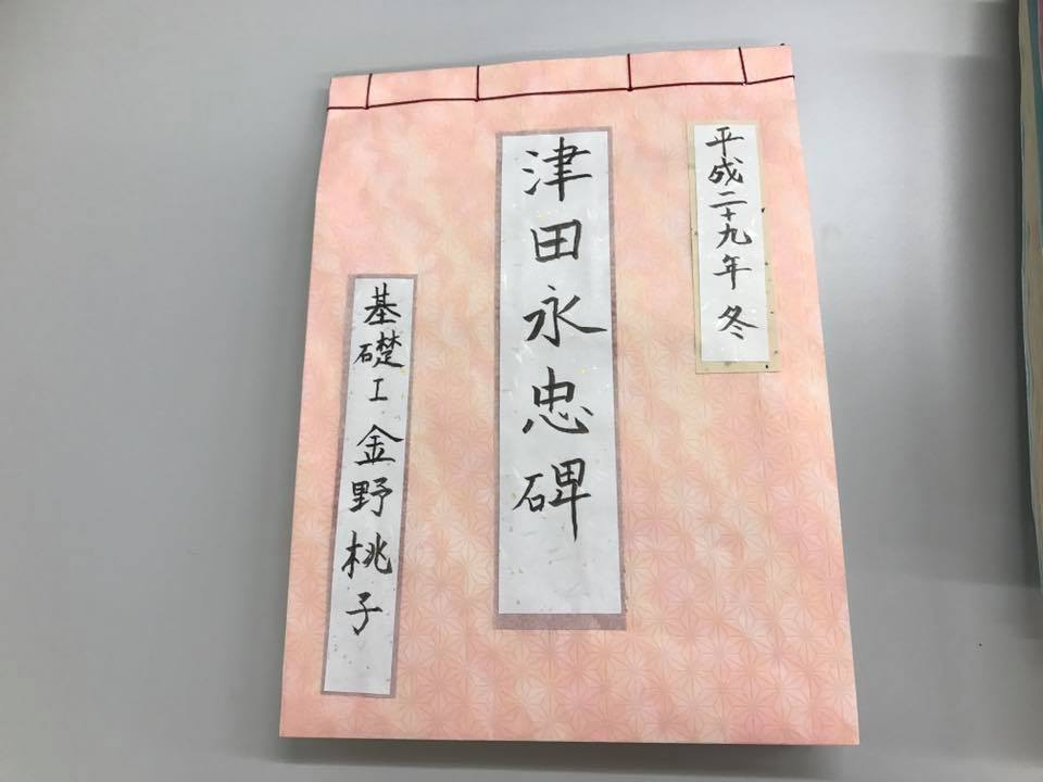また、基礎Iの課題である『津田永忠碑』も30枚書き上げ、和綴じをして提出しました。 30枚書き上げるのはなかなか大変でしたが、少しずつ書き溜めて、なんとか間に合いました。 自分で和綴じもできるようになって、嬉しいです。