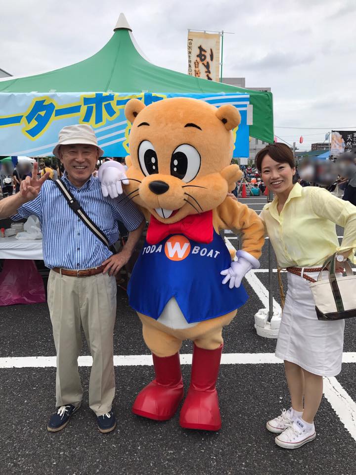 ボートレース戸田のウィンビーくんと。「いつも大変お世