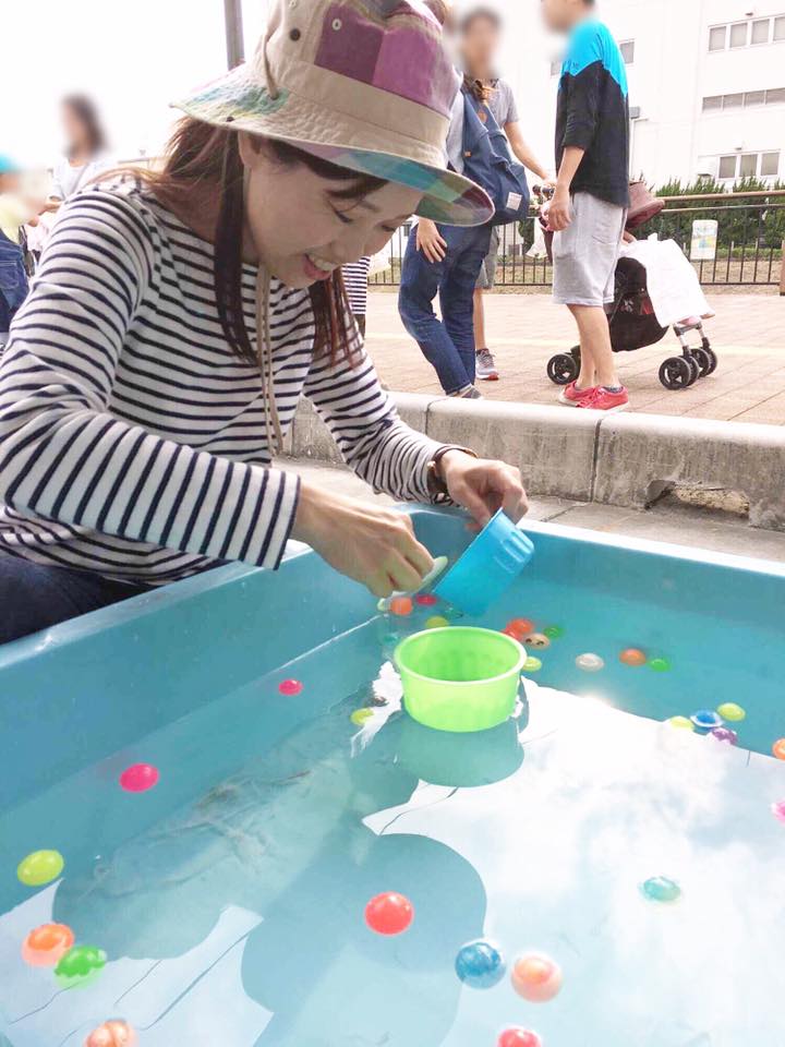 浅生議員と一緒にボールすくいを。浅生議員が撮ってくだ