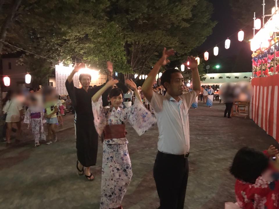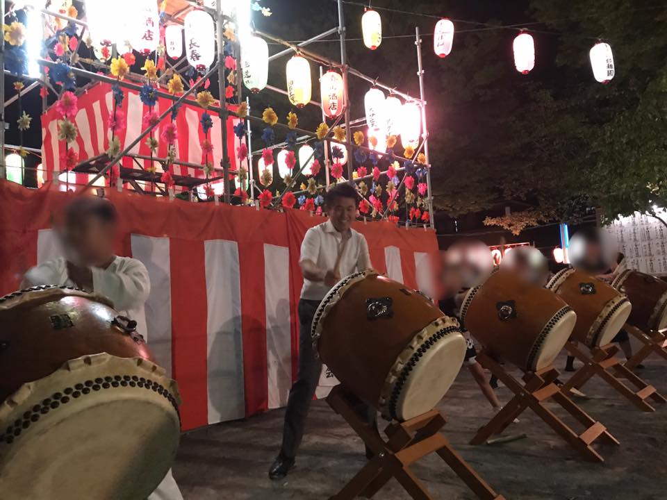 笹目南町の盆踊りは矢倉も立派で、盆踊りも盛大です。 組み太鼓も迫力満点で、お祭りの雰囲気も盛り上がりますね! たくさん皆さんとお話しもでき、去年私が声をかけて一緒に踊った中学生の女の子たちにも再開できて嬉しかったです。 先日、駅での募金活動で募金をしてくださった女の子とお母さんにもお会いできました。 とても楽しいひとときでした。