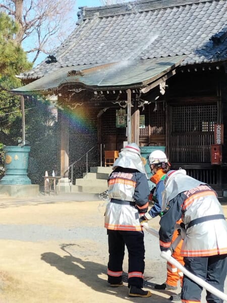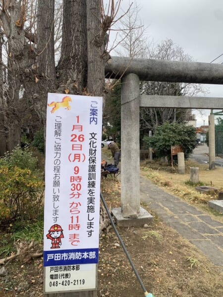 今日は下戸田氷川神社にて実施された文化財保護訓練を見学させていただきました。