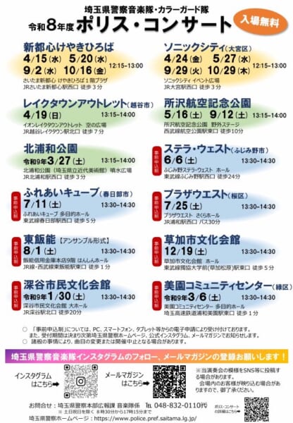 埼玉県警察音楽隊は、昭和33年5月の創設以来、県民の皆様と警察を結ぶ「音の架け橋」として、交通安全運動等での演奏を行っていらっしゃるそうです。