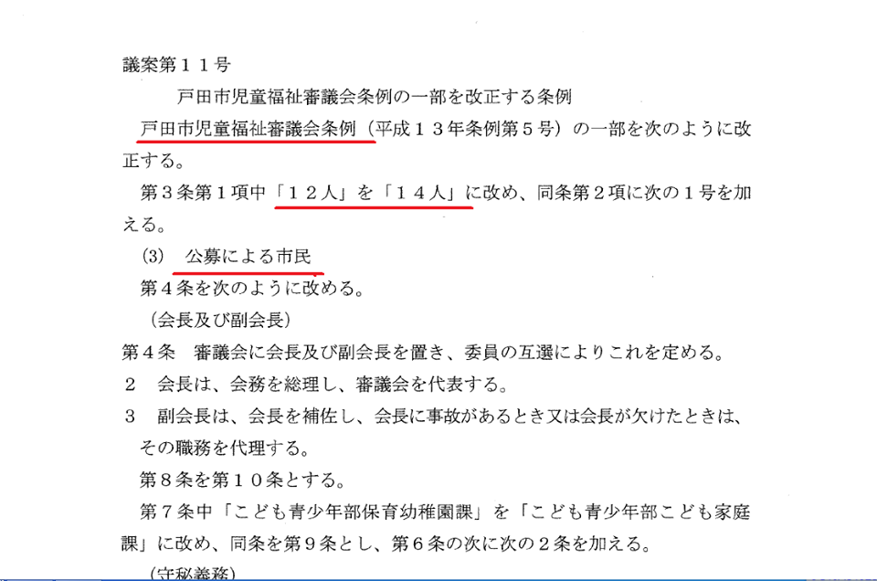 「戸田市児童福祉審議会」への公募市民枠の新設です。