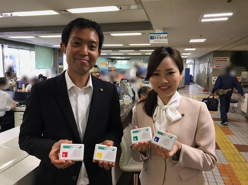 平成26年12月議会において、聴覚障がいのある方の窓口対応のため、耳マークと無線式振動呼び出し装置の導入を提案していたところ、戸田市でも早速導入していただきました!