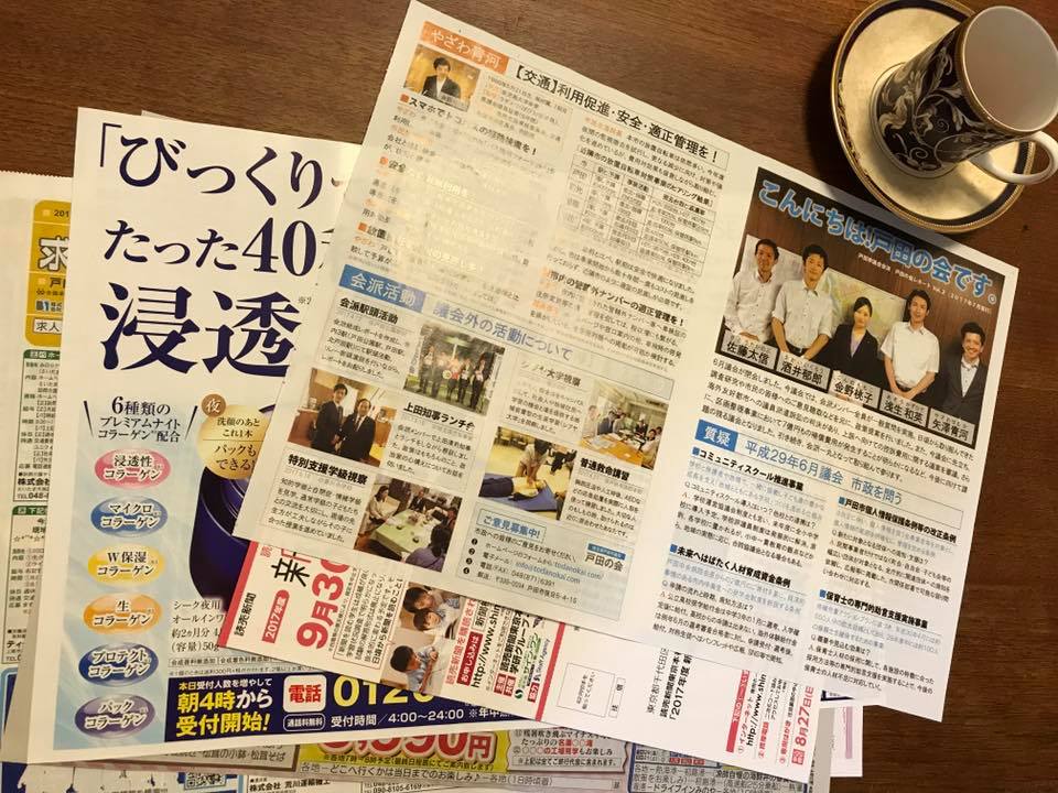 おはようございます。 先日市内3駅でもお配りしました戸田の会レポートは、本日の新聞朝刊に折込みでお配りしています。 ぜひご覧ください。