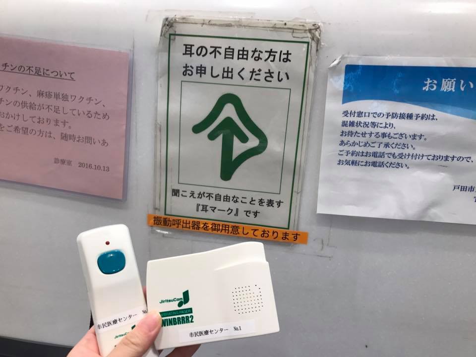 以前、市役所に聴覚障がい者用の振動呼出器を設置してい ただいた旨をお伝えしましたが、あわせて市民医療センタ ーにも設置していただきました。