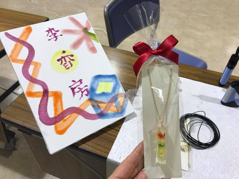会議の合間に少しだけ女性チャレンジショップに行って来ました。 前回注文したガラス細工のネックレスの受け取りと、今日から始まる後半のお店を覗くためです。