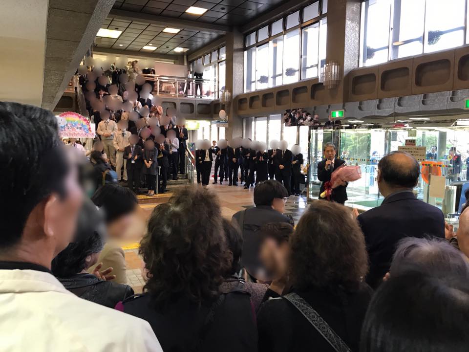 今日は、神保国男戸田市長の退任セレモニーに参加しました。 会場には市役所職員の方々や、一般の方々など大勢の皆さんがお集まりになり、「time to say goodbye」の曲とともに皆さんにお別れを告げる神保市長を盛大な拍手でお見送りしました。