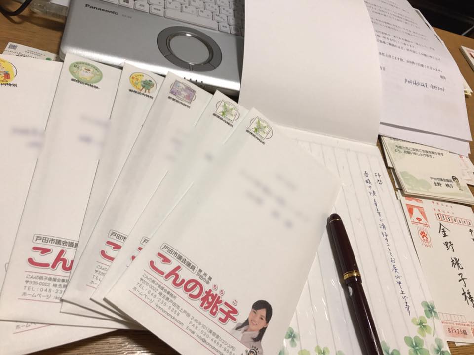 ご寄付をくださった方へのお礼状、市内の方からいただい