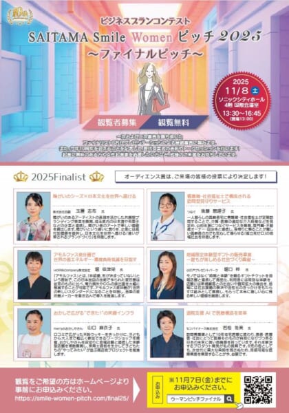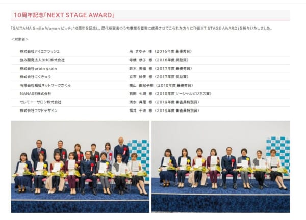 これを受け、11月8日(土)に開催された「SAITAMA Smile Women ピッチ」において、開催10周年を記念した表彰式が執り行われ、歴代受賞者の中から8名の方々が表彰されました。