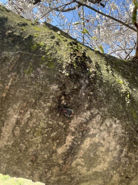 市内の方から、クビアカツヤカミキリの発生についてご意見を寄せられており、私が少し見たところクビアカツヤカマキリらしき昆虫は見当たりませんでしたが、写真の昆虫がいました。