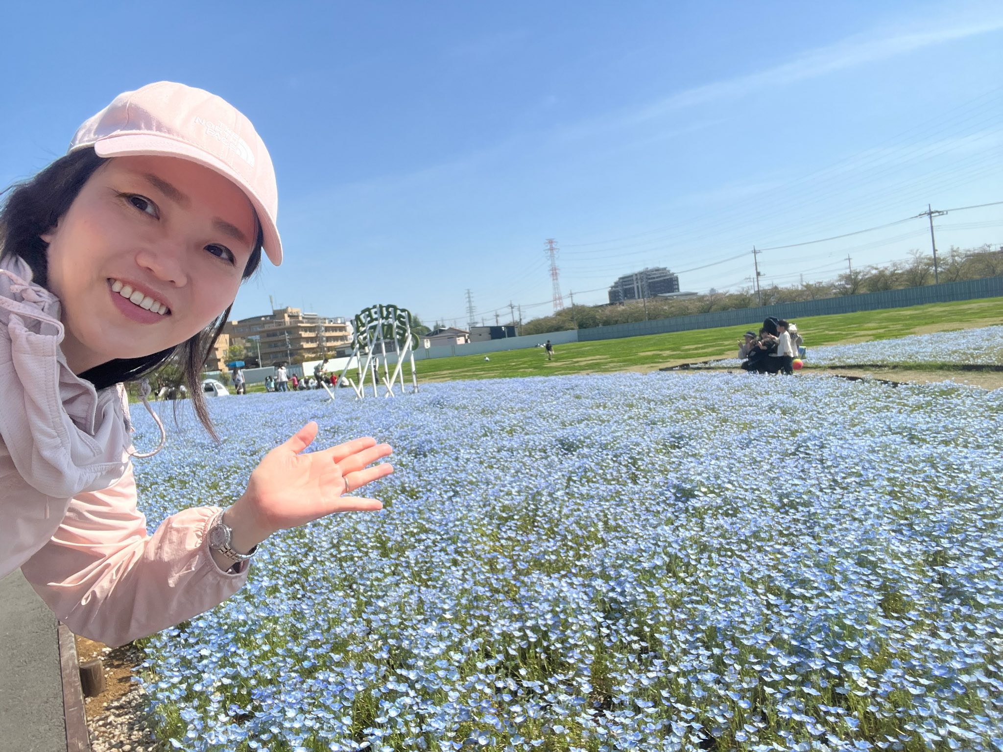 午後は川口市立グリーンセンターにお邪魔しました。 ネモフィラがちょうど満開を迎え、公園のあちらこちらで花が咲き誇り、まさに春爛漫の風景が広がっていました。 一面に広がる淡いブルーがとても美しく、思わず足を止めて見入ってし