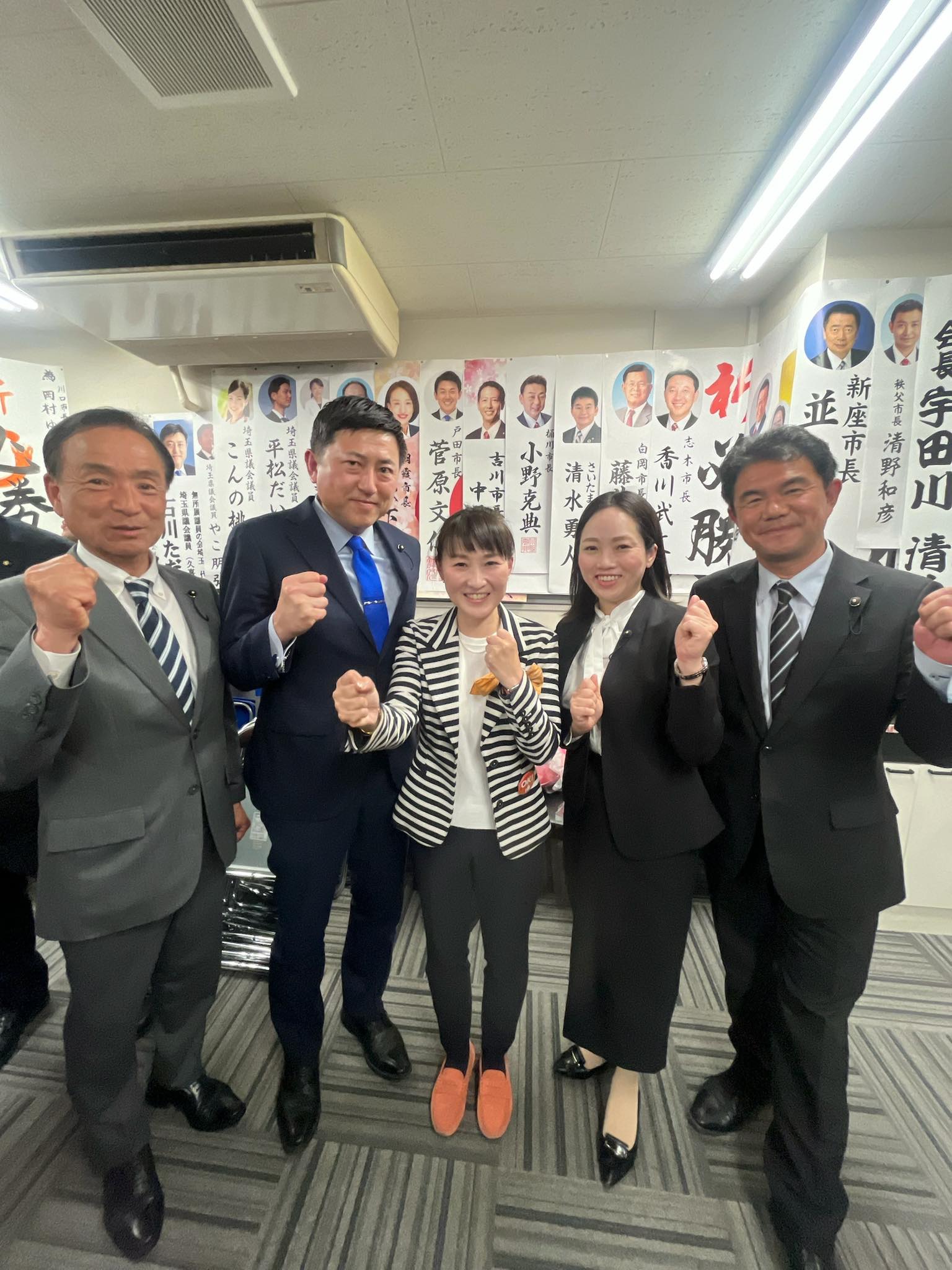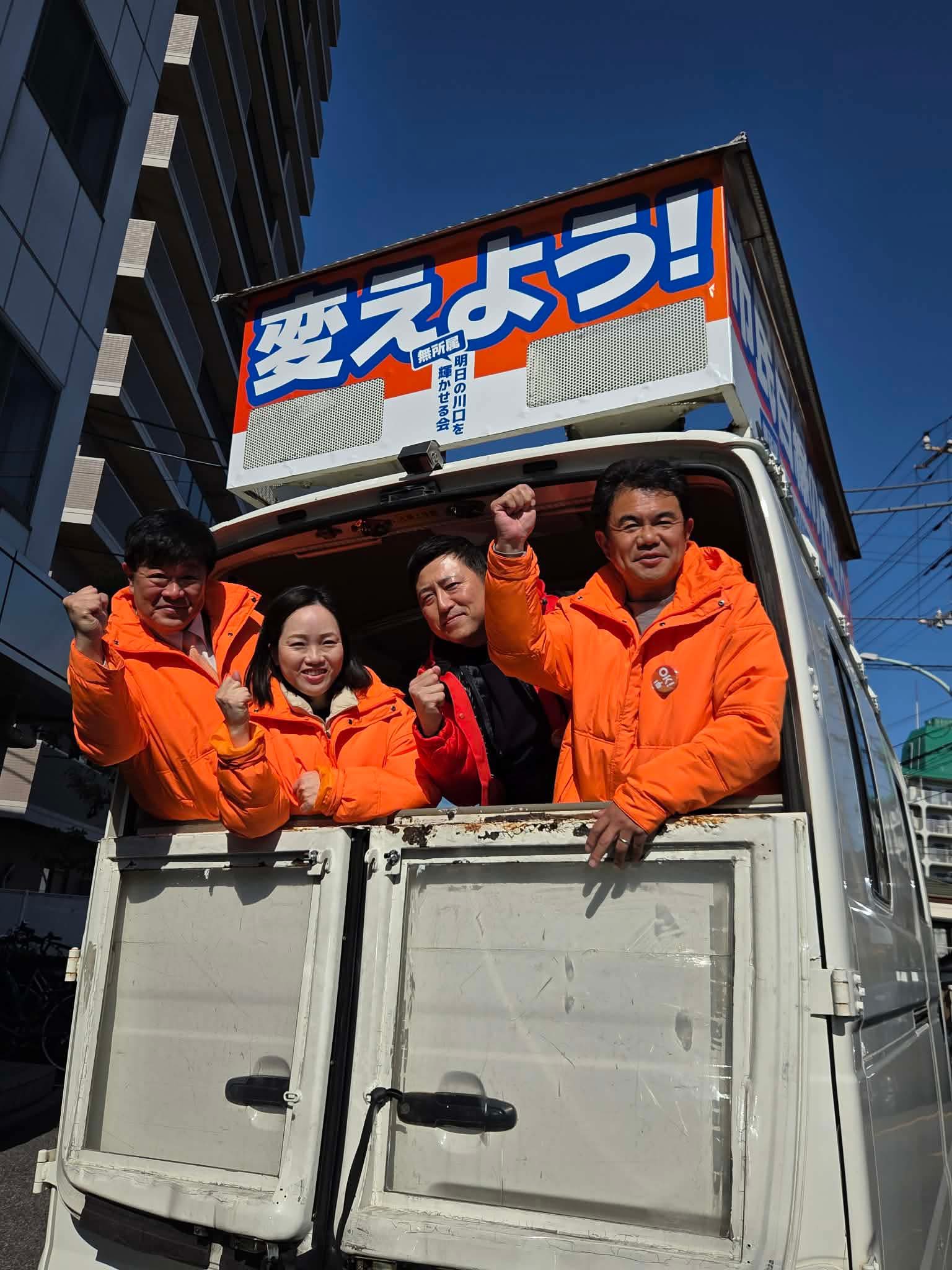 今日も川口市長選挙に立候補している岡村ゆり子候補の応援です。 今日は、戸田の会からは宮内奏子市議、辺見智子市議が来てくださいました。 無所属県民会議の松坂よしひろ県議、野口高明越谷市議もいらっしゃいました。 無所属の議員