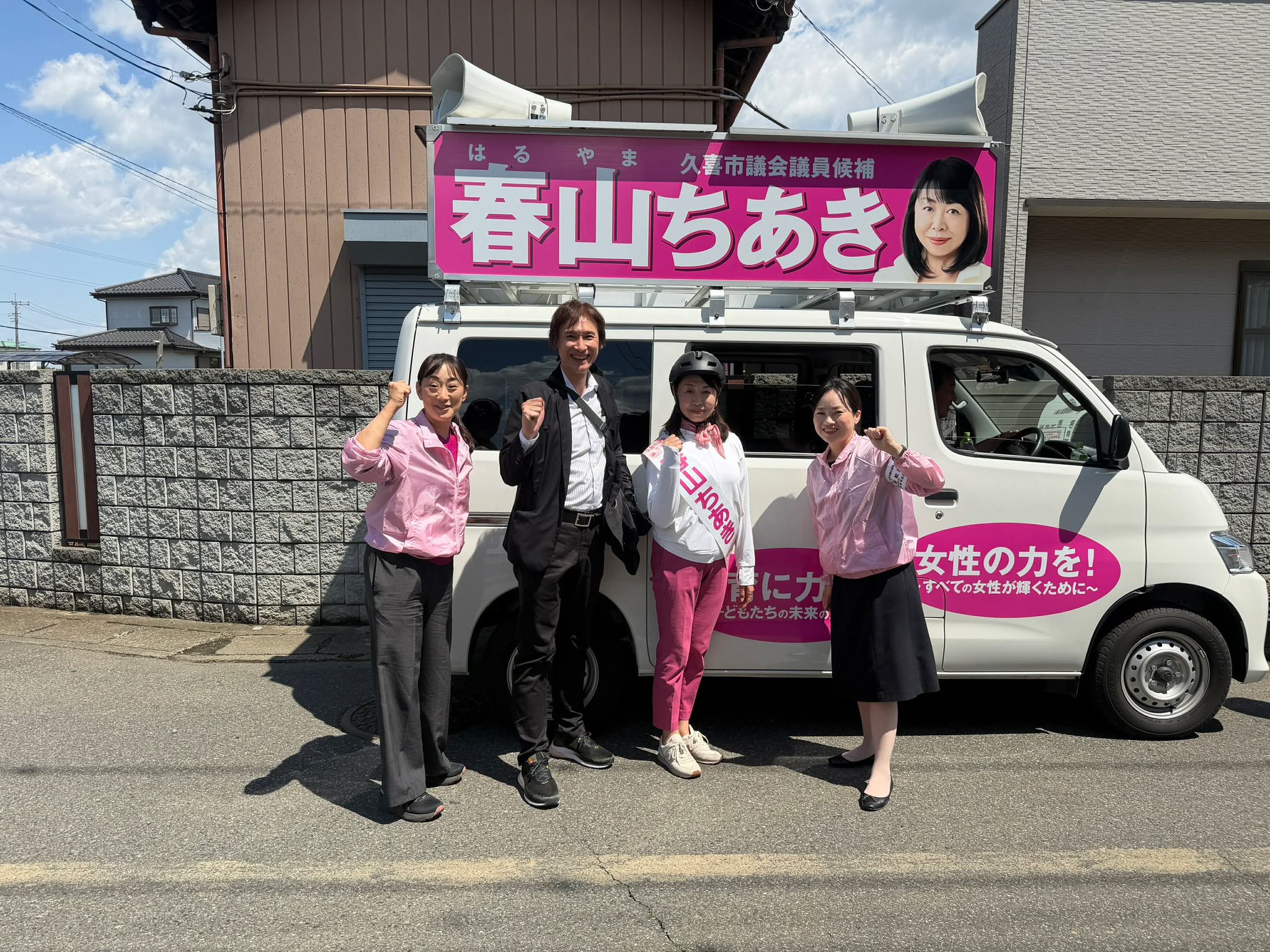 今日は久喜市議会議員選挙に立候補されている春山ちあき候補の応援に、山屋佳代市議とともに伺いました。 石川忠義県議、浅生和英市議もいらっしゃいました。 無所属で活動し、久喜市政初の女性議長も務められ、6期の経験と実績もあり