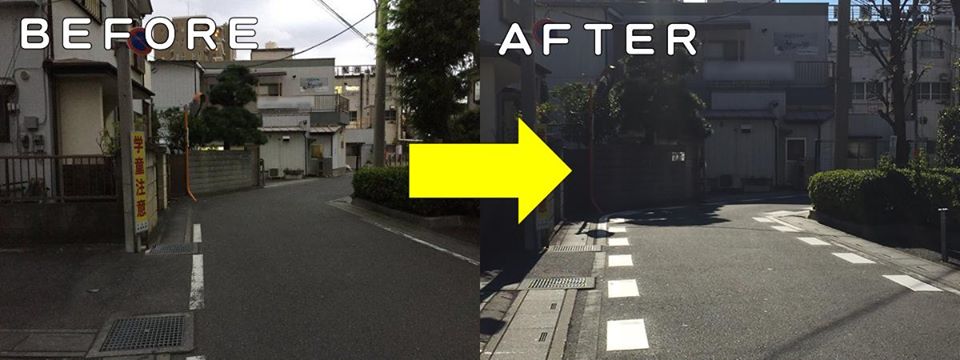 その結果、まずは道路のラインを引き直し、新たにカーブに点線を引いていただきました。