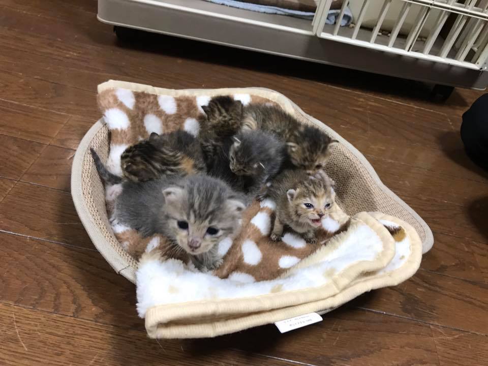 市内の方から「お腹の大きな野良猫を保護してほしい」とご意見をいただき、とだニャン(正式名称になったそうです)の方のご厚意で保護してくださっている野良猫+子猫6匹です。