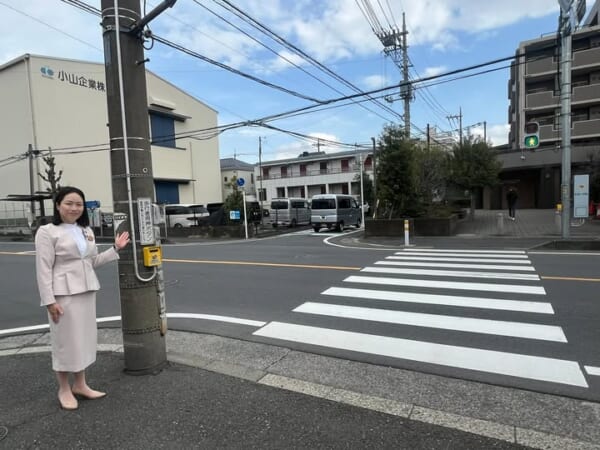 現地をご利用される方はぜひ、従来より早く青信号に変わりますので、押しボタンを押して安全に横断していただくようお願いいたします。